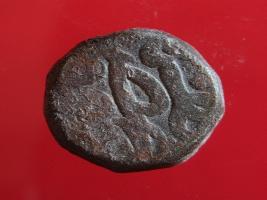 | Description / विवरण | Copper dam fulus of Akbar 962-1014 AH; 1556-1605 AD , from the Narnaul mint. Obverse, fragments of zarb fulus Narnau l quatrefoil. Reverse 98- nuhsad hashtad - . Fragmentary legends; |
