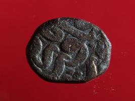 | Description / विवरण | Copper dam fulus of Akbar 962-1014 AH; 1556-1605 AD , from the Narnaul mint. Obverse; fragments of zarb fulus Nar- naul . Reverse 971 nuhsad haftad -. |