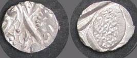 | Description / विवरण | Descrpn./Obv In the centre, a chhatra with Sa and Ta in Gurumukhi script on the left and right of its shaft; traces of the Persian legend seen on the obverse of the bigger Nanakshahi coins of Amritsar mint are also seen. Descrpn./Rev Big peepal leaf and traces of the Persian legend seen on the reverse of the bigger Nanakshahi coins of Amiritsar mint - Shri Amritsarjiv zarb [VS Year] Takht maimanat julus manus Akal Bakht. Especially traces of alif of Akal and te of Takht and maimanat are seen |