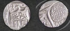 | Description / विवरण | Descrpn./Obv In the centre, a chhatra with Sa and Ta in Gurumukhi script on the left and right of its shaft; traces of the Persian legend seen on the obverse of the bigger Nanakshahi coins of Amritsar mint are also seen. Descrpn./Rev Big peepal leaf and traces of the Persian legend seen on the reverse of the bigger Nanakshahi coins of Amiritsar mint - Shri Amritsarjiv zarb [VS Year] Takht maimanat julus manus Akal Bakht. Especially traces of alif of Akal and te of Takht and maimanat are seen |