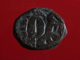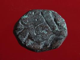 | Description / विवरण | Copper dam fulus of Akbar 962-1014 AH; 1556-1605 AD , from an unknown unidentifiable mint. Obverse, fragments of zarb fulus quatrefoil . Reverse, fragments of nuhsad hashtad numeric date off flan |