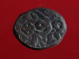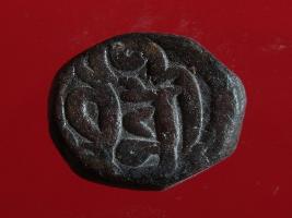 | Description / विवरण | Copper dam fulus of Akbar 962-1014 AH; 1556-1605 AD , from the Narnaul mint. Obverse, fragments of zarb fulus Narnaul and quatrefoil Reverse, fragments of sanh fi 982 nuhsad - . |