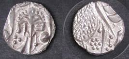 | Description / विवरण | Descrpn./Obv In the centre, a chhatra with Sa and Ta in Gurumukhi script on the left and right of its shaft; traces of the Persian legend seen on the obverse of the bigger Nanakshahi coins of Amritsar mint are also seen. Descrpn./Rev Big peepal leaf and traces of the Persian legend seen on the reverse of the bigger Nanakshahi coins of Amiritsar mint - Shri Amritsarjiv zarb [VS Year] Takht maimanat julus manus Akal Bakht. Especially traces of alif of Akal and te of Takht and maimanat are seen |