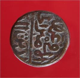 | Description / विवरण | Copper dam of Sultan Islam Shah Suri 952-60 AH; 1545-52 AD . Obverse Abu Al Muzaffar Islam Shah bin Sultan Sher Shah Khuld Allah Mulkah Top and bottom lines mostly off flan. Reverse Fi ahad al Amir al Hami al Din Al diyan - No date. No mint. |