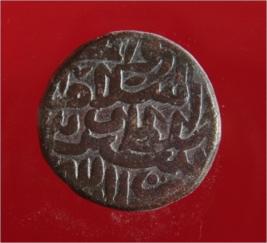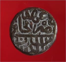 | Description / विवरण | Copper dam of Sultan Islam Shah Suri 952-60 AH; 1545-52 AD . Obverse Abu Al Muzaffar Islam Sultan bin Sher Shah Khuld Allah Mulkah Last line, as usual, mostly cut off. Unusual calligraphy of Sultan. Reverse Fi ahad al Amir al Hami al Din Al diyan 952 sanh No date.No mint. |