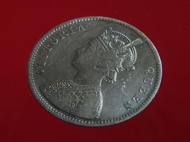 | Description / विवरण | The obverse shows the crowned bust of Victoria facing left, with the divided legend on either side along the edge. Milled rim, with dotted circle. Obverse legend Victoria Queen. Reverse, in centre, surrounded by floral border One rupee India 1862. Double circle with dots along the edge. |
