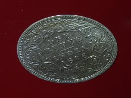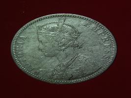 | Description / विवरण | The obverse shows the crowned bust of Victoria facing left, with the divided legend on either side along the edge. Milled rim, with dotted circle. Obverse legend Victoria Empress. Reverse, in centre, surrounded by floral border One rupee India 1886. Double circle with dots along the edge. |