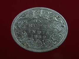 | Description / विवरण | The obverse shows the crowned bust of Victoria facing left, with the divided legend on either side along the edge. Milled rim, with dotted circle. Obverse legend Victoria Empress. Reverse, in centre, surrounded by floral border One rupee India 1889. Double circle with dots along the edge. |