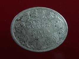| Description / विवरण | The obverse shows the crowned bust of Victoria facing left, with the divided legend on either side along the edge. Milled rim, with dotted circle. Obverse legend Victoria Empress. Reverse, in centre, surrounded by floral border One rupee India 1890. Double circle with dots along the edge. |