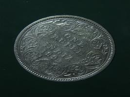 | Description / विवरण | The obverse shows the crowned bust of Victoria facing left, with the divided legend on either side along the edge. Milled rim, with dotted circle. Obverse legend Victoria Empress. Reverse, in centre, surrounded by floral border One rupee India 1891. Double circle with dots along the edge. |