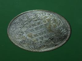 | Description / विवरण | The obverse shows the crowned bust of Victoria facing left, with the divided legend on either side along the edge. Milled rim, with dotted circle. Obverse legend Victoria Empress. Reverse, in centre, surrounded by floral border One rupee India 1901. Double circle with dots along the edge. |