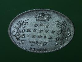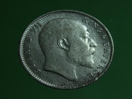 | Description / विवरण | The obverse shows the bald uncrowned head of Edward facing right, with the divided legend on either side along the edge. Milled rim, with dotted circle. Obverse legend Edward VII King & Emperor. Reverse, in centre,with a crown on top & floral vines on either side One Rupee India yak rupiah in Persian characters 1903. Dotted circle along the edge. |