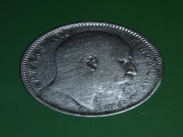 | Description / विवरण | The obverse shows the bald uncrowned head of Edward facing right, with the divided legend on either side along the edge. Milled rim, with dotted circle. Obverse legend Edward VII King & Emperor. Reverse, in centre,with a crown on top & floral vines on either side One Rupee India yak rupiah in Persian characters 1905. Dotted circle along the edge. |