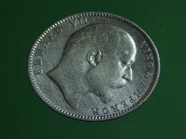 | Description / विवरण | The obverse shows the bald uncrowned head of Edward facing right, with the divided legend on either side along the edge. Milled rim, with dotted circle. Obverse legend Edward VII King & Emperor. Reverse, in centre,with a crown on top & floral vines on either side One Rupee India yak rupiah in Persian characters 1906. Dotted circle along the edge. |