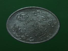 | Description / विवरण | The obverse shows the bald uncrowned head of Edward facing right, with the divided legend on either side along the edge. Milled rim, with dotted circle. Obverse legend Edward VII King & Emperor. Reverse, in centre,with a crown on top & floral vines on either side One Rupee India yak rupiah in Persian characters 1906. Dotted circle along the edge. |