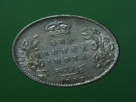 | Description / विवरण | The obverse shows the bald uncrowned head of Edward facing right, with the divided legend on either side along the edge. Milled rim, with dotted circle. Obverse legend Edward VII King & Emperor. Reverse, in centre,with a crown on top & floral vines on either side One Rupee India yak rupiah in Persian characters 1907. Dotted circle along the edge. |