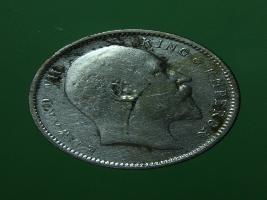 | Description / विवरण | The obverse shows the bald uncrowned head of Edward facing right, with the divided legend on either side along the edge. Milled rim, with dotted circle. Obverse legend Edward VII King & Emperor. Reverse, in centre,with a crown on top & floral vines on either side One Rupee India yak rupiah in Persian characters 1909. Dotted circle along the edge. |