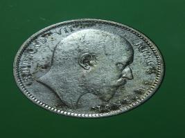 | Description / विवरण | The obverse shows the bald uncrowned head of Edward facing right, with the divided legend on either side along the edge. Milled rim, with dotted circle. Obverse legend Edward VII King & Emperor. Reverse, in centre,with a crown on top & floral vines on either side One Rupee India yak rupiah in Persian characters 1910. Dotted circle along the edge. |