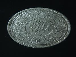 | Description / विवरण | The obverse shows the crowned head of George V facing left, with the continuous legend along the edge. Milled rim, with dotted circle. Beaded circle and milled rim. Obverse legend George V King Emperor. Reverse, in circle, surrounded by a floral vine One Rupee India 1912 yak rupiah in Persian characters . Double circle with beads along the edge. |