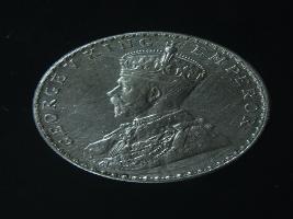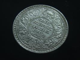| Description / विवरण | The obverse shows the crowned head of George V facing left, with the continuous legend along the edge. Milled rim, with dotted circle. Beaded circle and milled rim. Obverse legend George V King Emperor. Reverse, in circle, surrounded by a floral vine One Rupee India 1912 yak rupiah in Persian characters . Double circle with beads along the edge. |