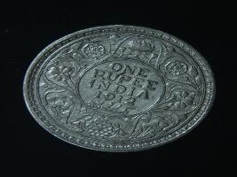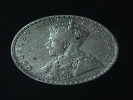 | Description / विवरण | The obverse shows the crowned head of George V facing left, with the continuous legend along the edge. Milled rim, with dotted circle. Beaded circle and milled rim. Obverse legend George V King Emperor. Reverse, in circle, surrounded by a floral vine One Rupee India 1912 yak rupiah in Persian characters . Double circle with beads along the edge. |
