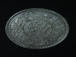 | Description / विवरण | The obverse shows the crowned head of George V facing left, with the continuous legend along the edge. Milled rim, with dotted circle. Beaded circle and milled rim. Obverse legend George V King Emperor. Reverse, in circle, surrounded by a floral vine One Rupee India 1912 yak rupiah in Persian characters . Double circle with beads along the edge. |
