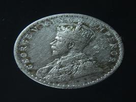 | Description / विवरण | The obverse shows the crowned head of George V facing left, with the continuous legend along the edge. Milled rim, with dotted circle. Beaded circle and milled rim. Obverse legend George V King Emperor. Reverse, in circle, surrounded by a floral vine One Rupee India 1913 yak rupiah in Persian characters . Double circle with beads along the edge. |