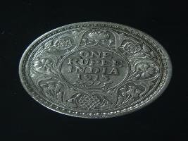 | Description / विवरण | The obverse shows the crowned head of George V facing left, with the continuous legend along the edge. Milled rim, with dotted circle. Beaded circle and milled rim. Obverse legend George V King Emperor. Reverse, in circle, surrounded by a floral vine One Rupee India 1913 yak rupiah in Persian characters . Double circle with beads along the edge. |