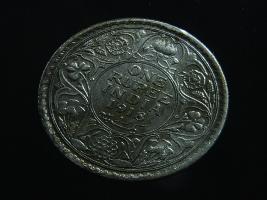| Description / विवरण | The obverse shows the crowned head of George V facing left, with the continuous legend along the edge. Milled rim, with dotted circle. Beaded circle and milled rim. Obverse legend George V King Emperor. Reverse, in circle, surrounded by a floral vine One Rupee India 1918 yak rupiah in Persian characters . Double circle with beads along the edge. |