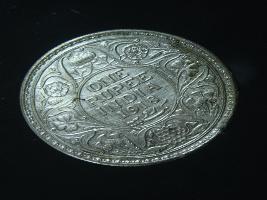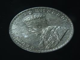 | Description / विवरण | The obverse shows the crowned head of George V facing left, with the continuous legend along the edge. Milled rim, with dotted circle. Beaded circle and milled rim. Obverse legend George V King Emperor. Reverse, in circle, surrounded by a floral vine One Rupee India 1918 yak rupiah in Persian characters . Double circle with beads along the edge. |