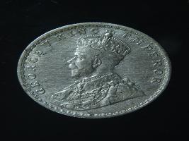 | Description / विवरण | The obverse shows the crowned head of George V facing left, with the continuous legend along the edge. Milled rim, with dotted circle. Beaded circle and milled rim. Obverse legend George V King Emperor. Reverse, in circle, surrounded by a floral vine One Rupee India 1919 yak rupiah in Persian characters . Double circle with beads along the edge. |