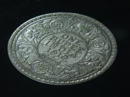 | Description / विवरण | The obverse shows the crowned head of George V facing left, with the continuous legend along the edge. Milled rim, with dotted circle. Beaded circle and milled rim. Obverse legend George V King Emperor. Reverse, in circle, surrounded by a floral vine One Rupee India 1919 yak rupiah in Persian characters . Double circle with beads along the edge. |