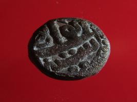 | Description / विवरण | Copper dam fulus of Akbar 962-1014 AH; 1556-1605 AD , from the Sirhind mint. Obverse Zarb Sir hind in dotted circle, partial . Reverse Sanh Ilahi 41 in circle with dots, partial . |