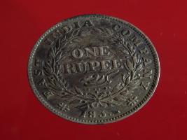 | Description / विवरण | Uncrowned head of King William IV facing right obverse . Machine struck with beaded border. Obverse legend William IIII King Reverse, in centre One rupee yak rupiah in Persian characters . Surrounded by two leafy branches, tied with a ribbon.1835 at the bottom, & East India Company along the edge. |