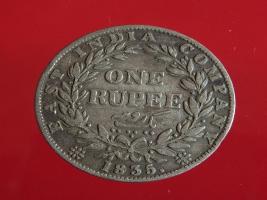 | Description / विवरण | Uncrowned head of King William IV facing right obverse . Machine struck with beaded border. Obverse legend William IIII King Reverse, in centre One rupee yak rupiah in Persian characters . Surrounded by two leafy branches, tied with a ribbon.1835 at the bottom, & East India Company along the edge. |