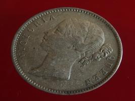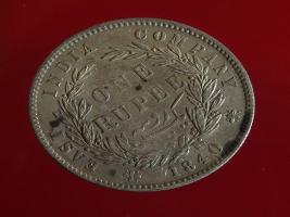 | Description / विवरण | The obverse shows the uncrowned head of the young Victoria facing left, hair done in a pony-tail, with the unbroken legend along the edge. Milled rim, with dotted circle. Obverse legend Victoria Queen. Reverse, in centre, surrounded by floral branches One Rupee yak rupiah in Persian characters . Along the edge, East India Company with the date 1840 at the bottom. Double circle with dots along the edge. |