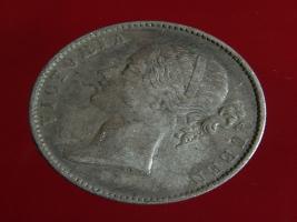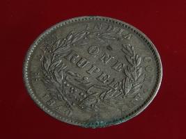 | Description / विवरण | The obverse shows the uncrowned head of the young Victoria facing left, hair done in a pony-tail, with the unbroken legend along the edge. Milled rim, with dotted circle. Obverse legend Victoria Queen. Reverse, in centre, surrounded by floral branches One Rupee yak rupiah in Persian characters . Along the edge, East India Company with the date 1840 at the bottom. Double circle with dots along the edge. |