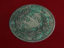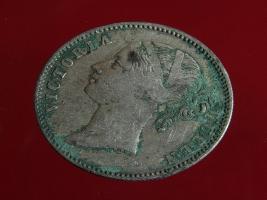 | Description / विवरण | The obverse shows the uncrowned head of the young Victoria facing left, hair done in a pony-tail, with the unbroken legend along the edge. Milled rim, with dotted circle. Obverse legend Victoria Queen. Reverse, in centre, surrounded by floral branches One Rupee yak rupiah in Persian characters . Along the edge, East India Company with the date 1840 at the bottom. Double circle with dots along the edge. |