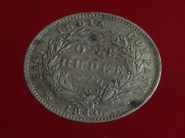 | Description / विवरण | The obverse shows the uncrowned head of the young Victoria with her hair done in a pony-tail. The legend in this coin is divided . Milled rim, with dotted circle. Obverse legend Victoria Queen. At the truncation, the raised initials WW , very small, barely visible. Reverse, in centre One rupee yak rupiah in Persian characters . Surrounded with crossed leafy branches wreath, with berries, tied with a ribbon. At bottom, the date 1840 , & the words East India Company along the edge. |
