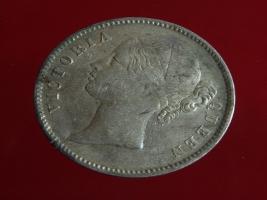 | Description / विवरण | The obverse shows the uncrowned head of the young Victoria with her hair done in a pony-tail. The legend in this coin is divided . Milled rim, with dotted circle. Obverse legend Victoria Queen. At the truncation, the raised initials WW , very small, barely visible. Reverse, in centre One rupee yak rupiah in Persian characters . Surrounded with crossed leafy branches wreath, with berries, tied with a ribbon. At bottom, the date 1840 , & the words East India Company along the edge. |