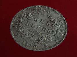 | Description / विवरण | The obverse shows the uncrowned head of the young Victoria with her hair done in a pony-tail. The legend in this coin is divided . Milled rim, with dotted circle. Obverse legend Victoria Queen. At the truncation, the raised initials WW , very small, barely visible. Reverse, in centre One rupee yak rupiah in Persian characters . Surrounded with crossed leafy branches wreath, with berries, tied with a ribbon. At bottom, the date 1840 , & the words East India Company along the edge. |