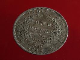 | Description / विवरण | The obverse shows the uncrowned head of the young Victoria with her hair done in a pony-tail. The legend in this coin is divided . Milled rim, with dotted circle. Obverse legend Victoria Queen. At the truncation, the raised initials WW , very small, barely visible. Reverse, in centre One rupee yak rupiah in Persian characters . Surrounded with crossed leafy branches wreath, with berries, tied with a ribbon. At bottom, the date 1840 , & the words East India Company along the edge. |