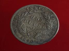 | Description / विवरण | The obverse shows the uncrowned head of the young Victoria with her hair done in a pony-tail. The legend in this coin is divided . Milled rim, with dotted circle. Obverse legend Victoria Queen. At the truncation, the raised initials WW , very small, barely visible. Reverse, in centre One rupee yak rupiah in Persian characters . Surrounded with crossed leafy branches wreath, with berries, tied with a ribbon. At bottom, the date 1840 , & the words East India Company along the edge. |
