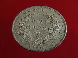 | Description / विवरण | The obverse shows the uncrowned head of the young Victoria with her hair done in a pony-tail. The legend in this coin is divided . Milled rim, with dotted circle. Obverse legend Victoria Queen. At the truncation, the raised initials WW , very small, barely visible. Reverse, in centre One rupee yak rupiah in Persian characters . Surrounded with crossed leafy branches wreath, with berries, tied with a ribbon. At bottom, the date 1840 , & the words East India Company along the edge. |