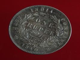 | Description / विवरण | The obverse shows the uncrowned head of the young Victoria with her hair done in a pony-tail. The legend in this coin is divided . Milled rim, with dotted circle. Obverse legend Victoria Queen. At the truncation, the raised initials WW , very small, barely visible. Reverse, in centre One rupee yak rupiah in Persian characters . Surrounded with crossed leafy branches wreath, with berries, tied with a ribbon. At bottom, the date 1840 , & the words East India Company along the edge. |
