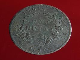 | Description / विवरण | The obverse shows the uncrowned head of the young Victoria with her hair done in a pony-tail. The legend in this coin is divided . Milled rim, with dotted circle. Obverse legend Victoria Queen. At the truncation, the raised initials WW , very small, barely visible. Reverse, in centre One rupee yak rupiah in Persian characters . Surrounded with crossed leafy branches wreath, with berries, tied with a ribbon. At bottom, the date 1840 , & the words East India Company along the edge. |