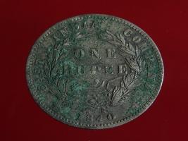 | Description / विवरण | The obverse shows the uncrowned head of the young Victoria with her hair done in a pony-tail. The legend in this coin is divided . Milled rim, with dotted circle. Obverse legend Victoria Queen. At the truncation, the raised initials WW , very small, barely visible. Reverse, in centre One rupee yak rupiah in Persian characters . Surrounded with crossed leafy branches wreath, with berries, tied with a ribbon. At bottom, the date 1840 , & the words East India Company along the edge. |