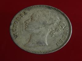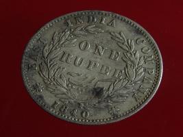 | Description / विवरण | The obverse shows the uncrowned head of the young Victoria with her hair done in a pony-tail. The legend in this coin is divided . Milled rim, with dotted circle. Obverse legend Victoria Queen. At the truncation, the raised initials WW , very small, barely visible. Reverse, in centre One rupee yak rupiah in Persian characters . Surrounded with crossed leafy branches wreath, with berries, tied with a ribbon. At bottom, the date 1840 , & the words East India Company along the edge. |