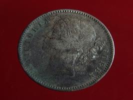 | Description / विवरण | The obverse shows the uncrowned head of the young Victoria with her hair done in a pony-tail. The legend in this coin is divided . Milled rim, with dotted circle. Obverse legend Victoria Queen. At the truncation, the raised initials WW , very small, barely visible. Reverse, in centre One rupee yak rupiah in Persian characters . Surrounded with crossed leafy branches wreath, with berries, tied with a ribbon. At bottom, the date 1840 , & the words East India Company along the edge. |