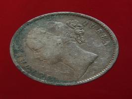 | Description / विवरण | The obverse shows the uncrowned head of the young Victoria with her hair done in a pony-tail. The legend in this coin is divided . Milled rim, with dotted circle. Obverse legend Victoria Queen. At the truncation, the raised initials WW , very small, barely visible. Reverse, in centre One rupee yak rupiah in Persian characters . Surrounded with crossed leafy branches wreath, with berries, tied with a ribbon. At bottom, the date 1840 , & the words East India Company along the edge. |